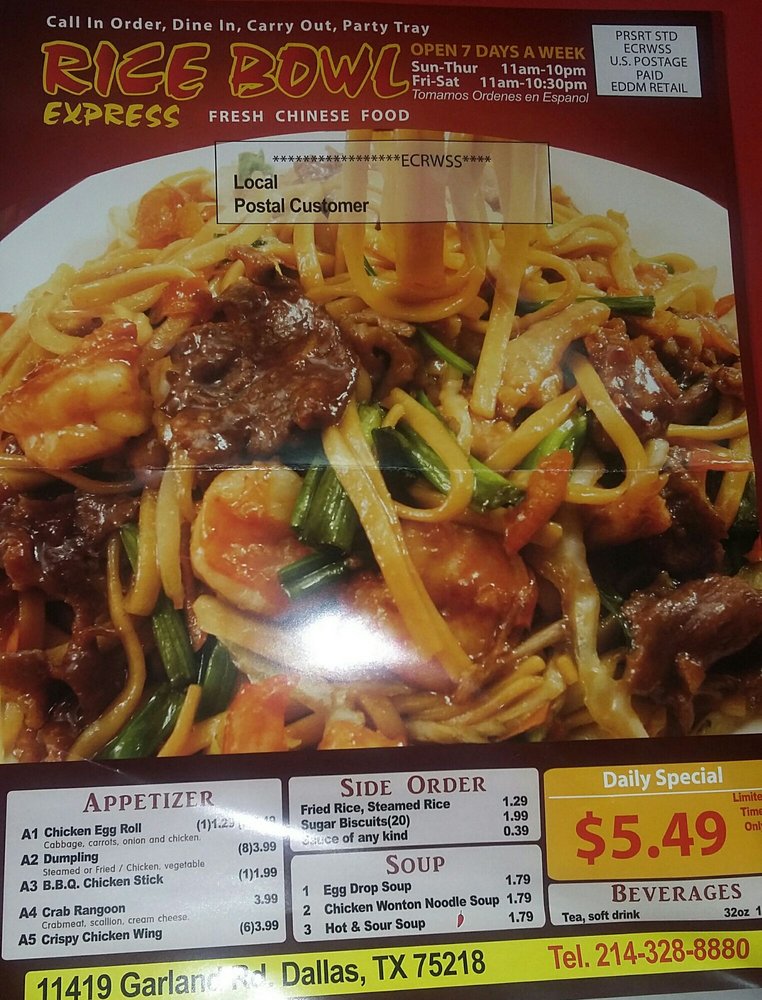 Welcome to Rice Bowl Express, a delightful Chinese eatery nestled in Dallas, TX. This casual dining hotspot is perfect for families, groups, or a quick takeout meal. The moment you step in, the vibrant atmosphere invites you to explore a menu brimming with fresh, flavorful options.